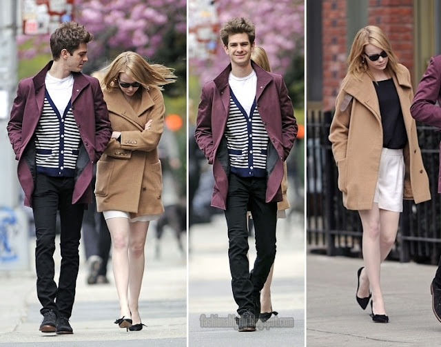 How cute are these two? These days it's not uncommon for co-stars to hook up and start dating. But Emma and Andrew really seem to be in love and aren't just together for some publicity stunt. Whoever casted them for the new Spider Man movie did an amazing job! They have become inseparable ever since working together and they always compliment eachother's looks when on the red carpet. But what I really like about these two is that they have their own individual style as well. Usually it's the guy who looks like an accessory or arm candy to their girlfriend, but Andrew Garfield can hold his own when it comes to fashion! So Olivia Palermo and Johannes better watch out, because there is a new stylish "it couple" in Hollywood....(Ps. Check them out on the August issue of TeenVogue!)